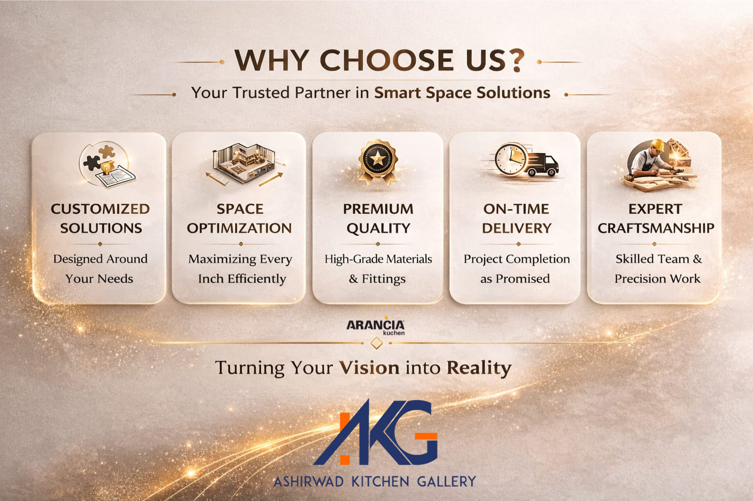 Choosing the right partner makes all the difference. From customized solutions to premium quality and on-time delivery — we turn your vision into reality with precision and care. Because you deserve nothing but the best. ✨ #WhyChooseUs #TrustedBrand #SpaceSolutions #InteriorDesignExperts #QualityMatters #CustomerFirst #ModernInteriors #SmartSpaces #akginteriors #ExcellenceInEveryDetail #ashirwadkitchengallery #kitchenindia #customersatisfaction