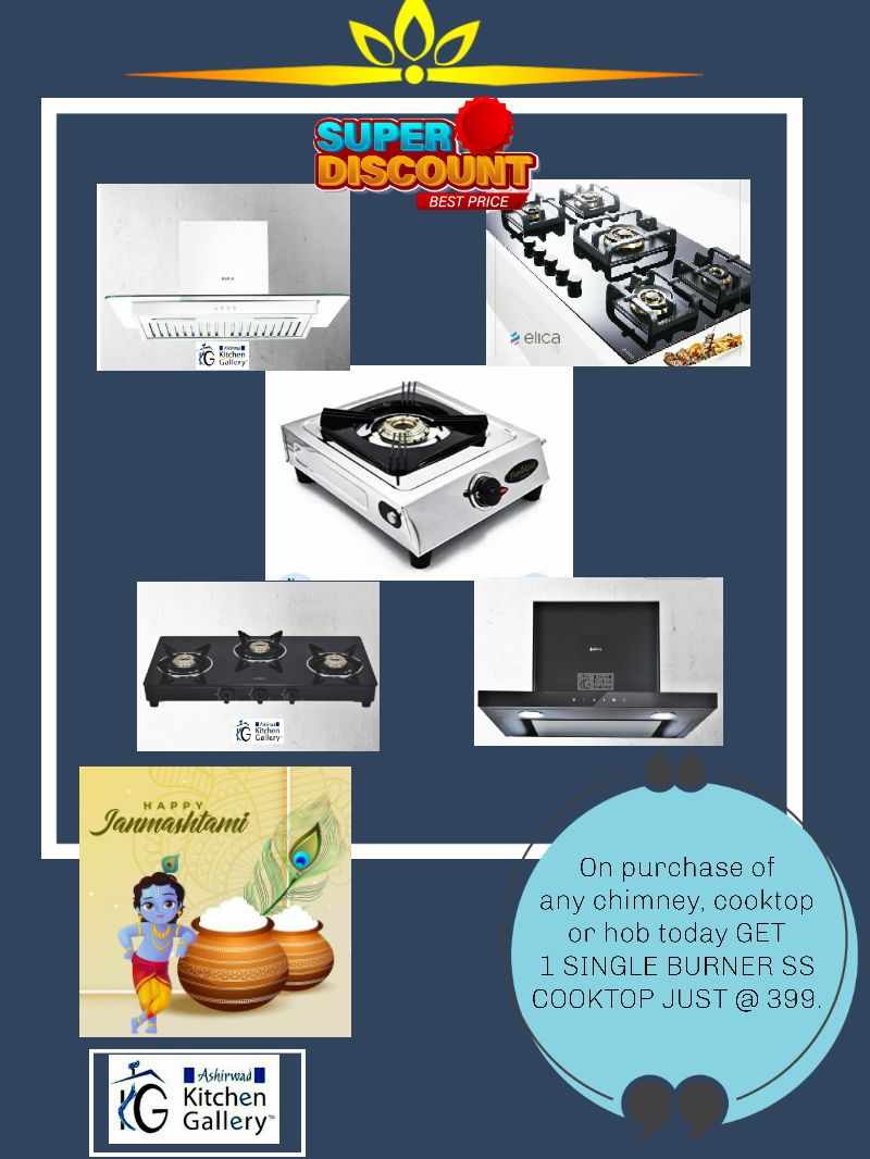 On purchase of any product from showroom, including HOBS, CHIMNEYS, COOKTOPS get a SINGLE BURNER SS COOKTOP @399 only . No tension of glass breakage from ovens now. Offer valid for today only! Buy or Book tokens today only to avail offer Call for details